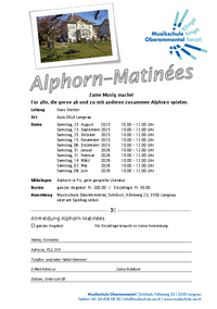Aufgrund des Erfolgs der Alphorn-Matinées des vergangenen Jahres freuen wir uns, in jedem Schuljahr 10 Termine anbieten zu dürfen.